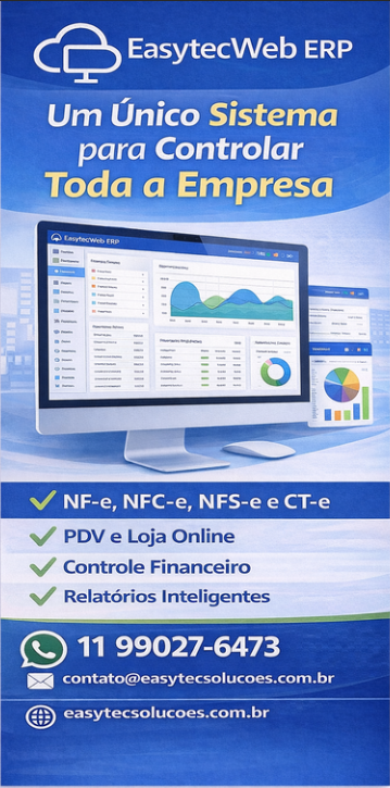 Sua empresa tem um sistema completo para gestão ? Fale conosco da Easytec Solucoes em Informática e obtenha um unico sistema para cuidar de toda gestão da sua empresa e tornea mais lucrativa com controle total do seu estoque, vendas, emissões fiscais, controle financeiro e muito mais.